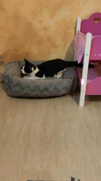 Gouloume (mâle tigré et blanc) est très proche de l’humain et adore les câlins.