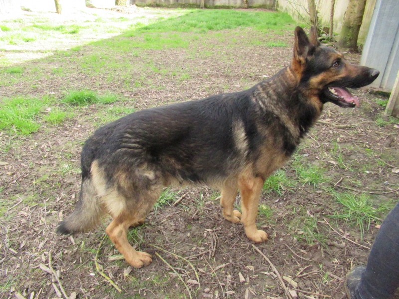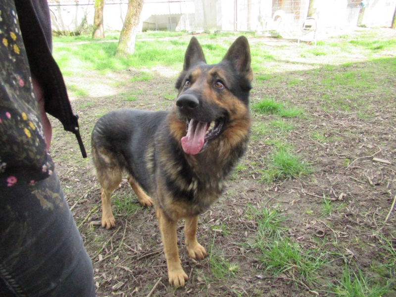 Sam est un magnifique berger allemand énergique et avec du caractère. Il aime jouer, vient se coller pour chercher des caresses.