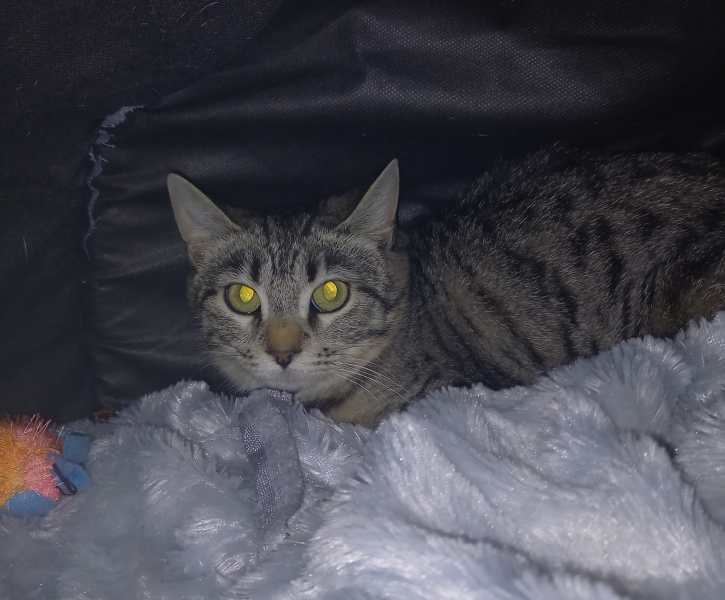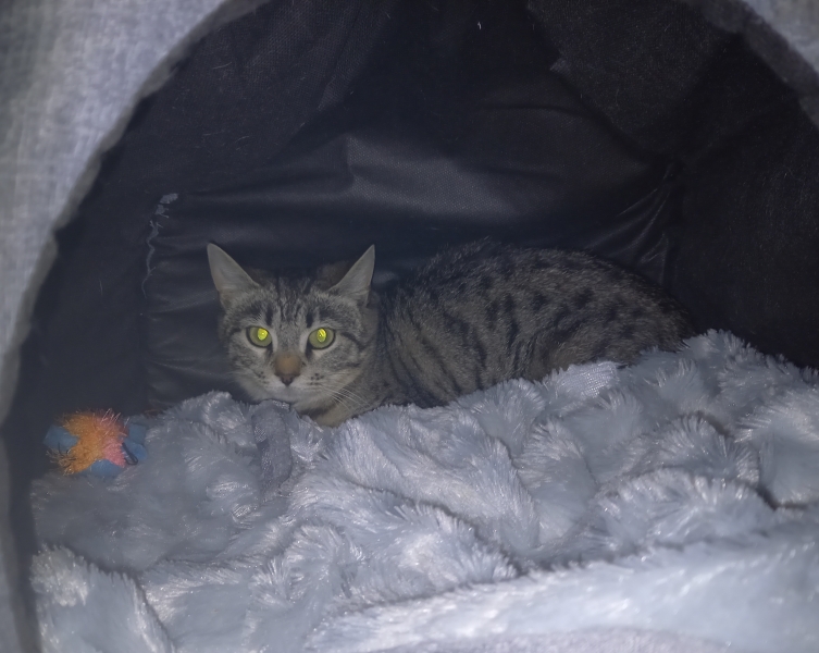 Abys est identifiée, vaccinée, stérilisée et testée FIV négative.