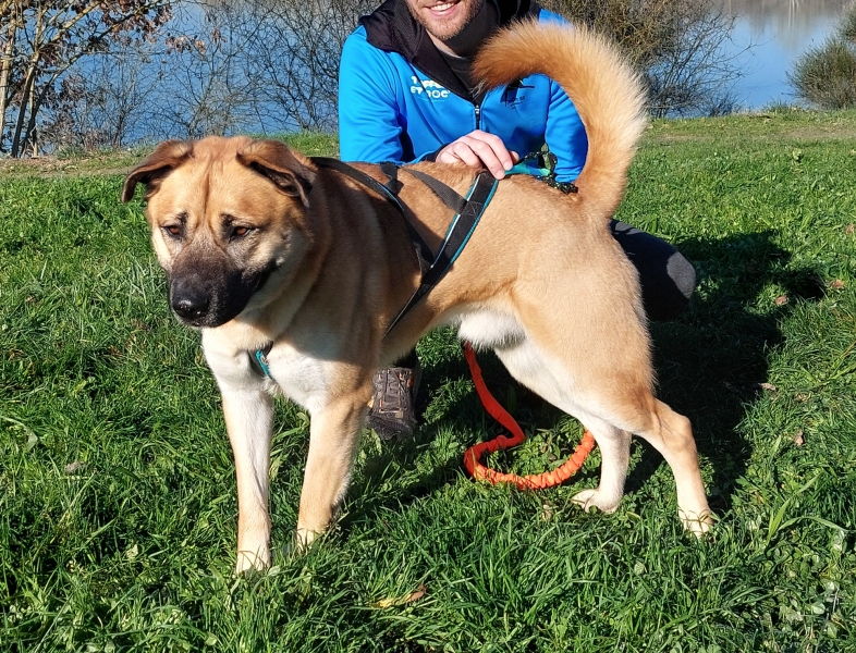 En balade, il est tranquille avec ses congénères. Il sera un bon gardien.