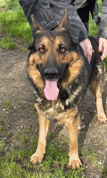 Sam est un magnifique berger allemand énergique et avec du caractère. Il aime jouer, vient se coller pour chercher des caresses.